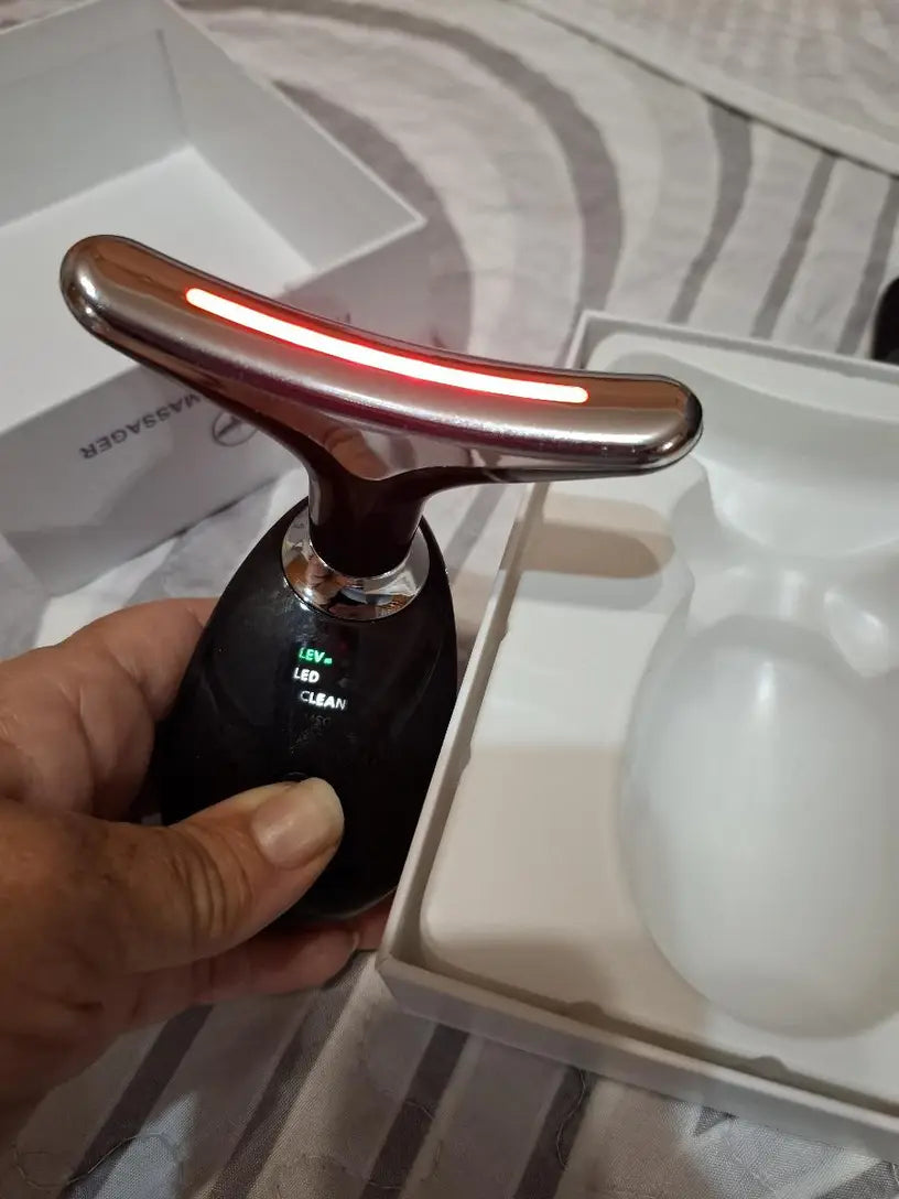 “Uma sensação muito agradável durante o uso. Dura muito tempo após a recarga. Espero que os resultados sejam visíveis ao longo do tempo. Um massagador facial bem feito e acessível. Recomendo!” -